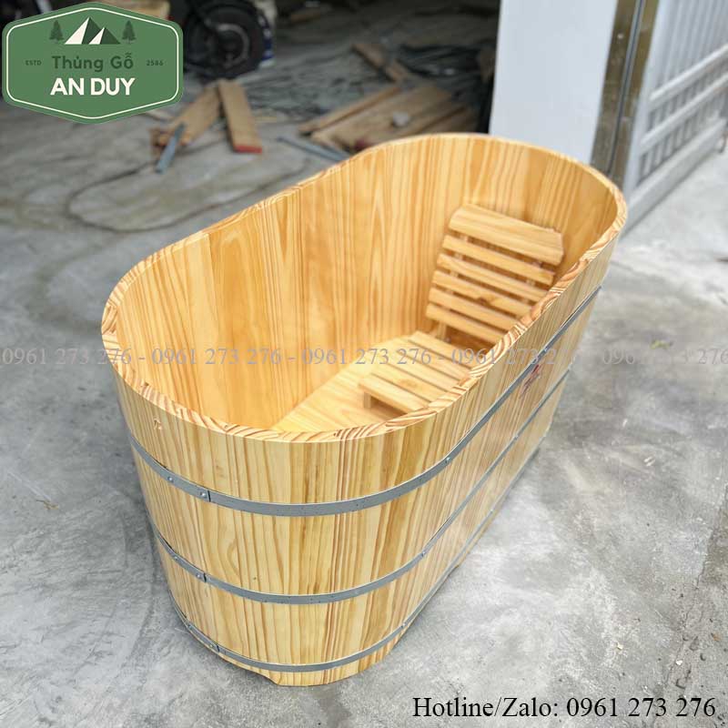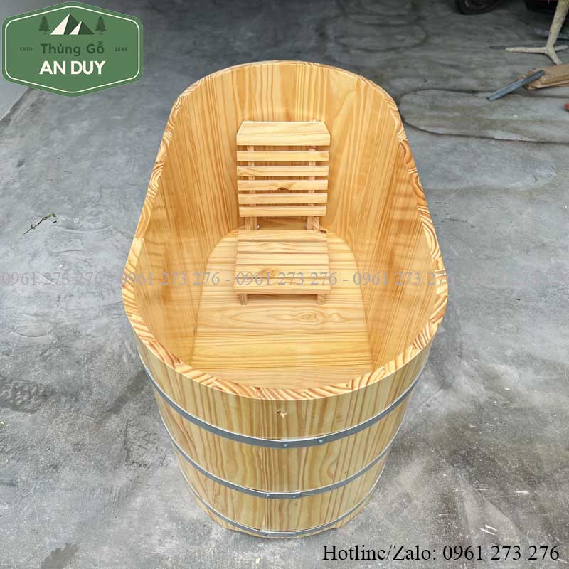 Thùng tắm gỗ thông có kiểu dáng sang trọng bắt mắt phù hợp với nhiều không gian khác nhau tạo ấn tượng cho người sử dụng ngay lần đầu sử dụng