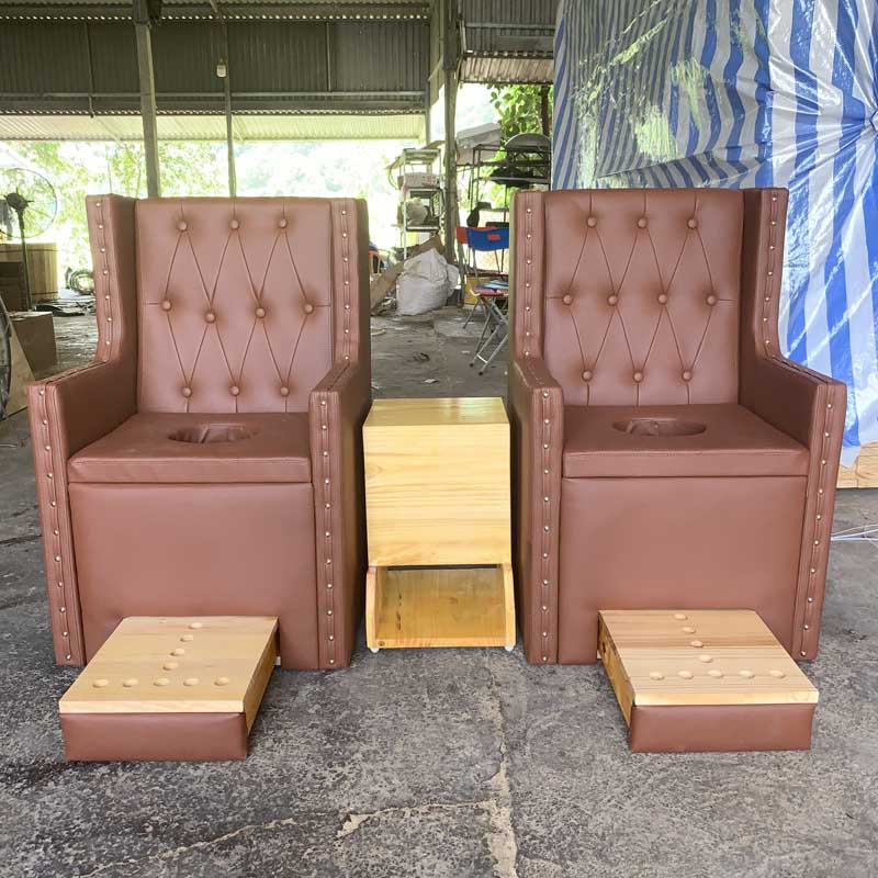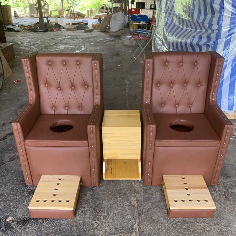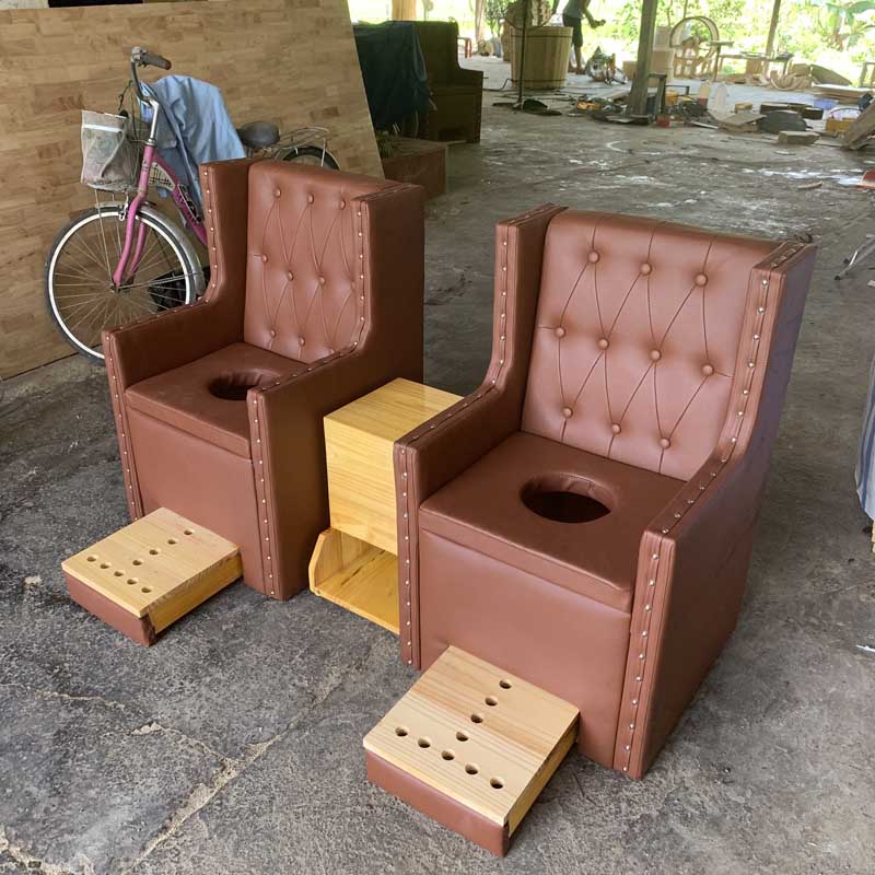 - 01 ghế xông làm từ gỗ thông tự nhiên được bọc da và nỉ theo yêu cầu của quý khách (bên trong lồng inox sạch sẽ vệ sinh)