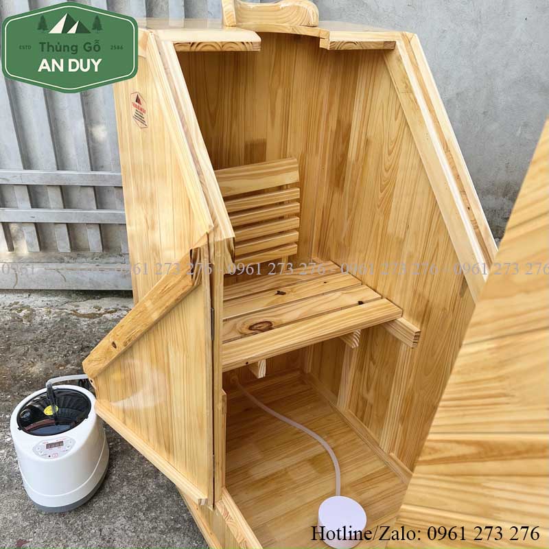 - Chất Liệu: Gỗ Thông sấy nhập khẩu, tuyển chọn phần tốt nhất giúp phòng xông luôn bền đẹp.