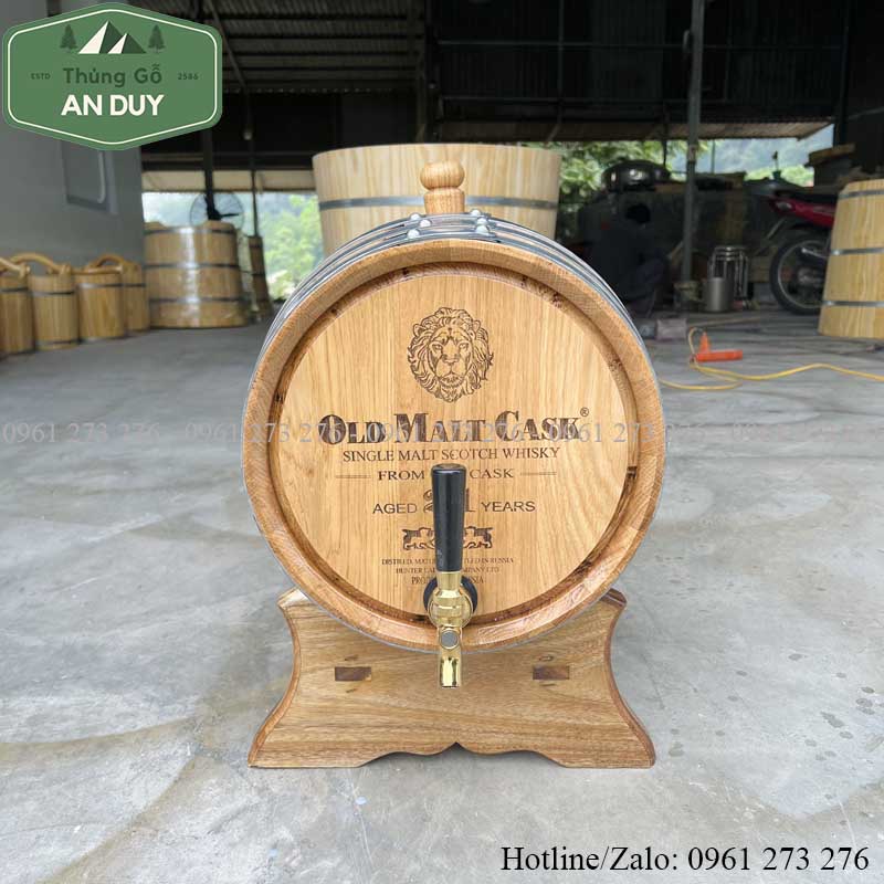 Thùng gỗ sồi 20 lít gia cố chắc chắn 6 đai Inox