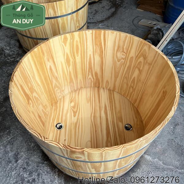 Cơ sở sản xuất An Duy chuyên đóng thùng tắm gỗ spa đôi đường kính 1.2m được làm từ nhiều loại gỗ khác nhau như: bồn tắm gỗ Pơ Mu, bồn tắm gỗ Sồi, Gỗ Thông dùng trong các spa, khách sạn, resort, khu nghỉ dưỡng.