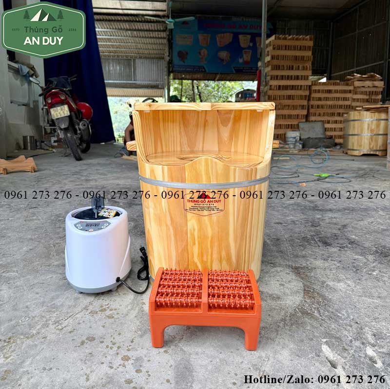 Thùng xông hơi chân là một thiết bị được làm từ gỗ tự nhiên, bình thường tích hợp máy xông hơi mini để tạo hơi nước nóng, giúp ngâm và xông chân hiệu quả. Các tên khác như thùng gỗ xông chân , thùng gỗ xông hơi , thùng gỗ xông hơi chân , hay thùng xông hơi chân đều chỉ sản phẩm này với mục đích chăm sóc sức khỏe đôi chân . Tại xưởng sản xuất Thùng gỗ An Duy , mỗi thùng được chế tạo công thủ, đảm bảo độ bền và tính thẩm mỹ cao.