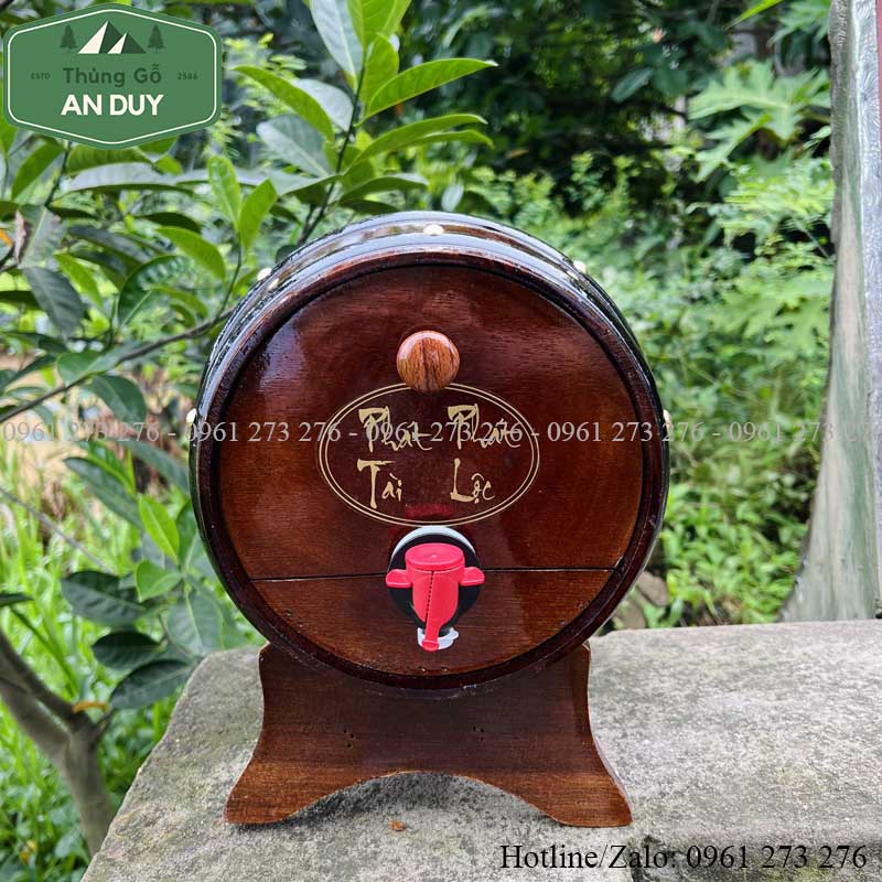 Thiết Kế: Sản phẩm được làm rất đơn giản nhưng vô cùng tinh tế, được làm mô phỏng chiếc trống gỗ đựng rượu vang và thiết kế thêm chân đỡ gắn liền. Mặt thùng cắt 2/3 có thể tháo rời để cho bịch vang vào trong, khoét lỗ 2,5cm để chừa phần vòi ra bên ngoài rất hợp lý và tiện sử dụng.